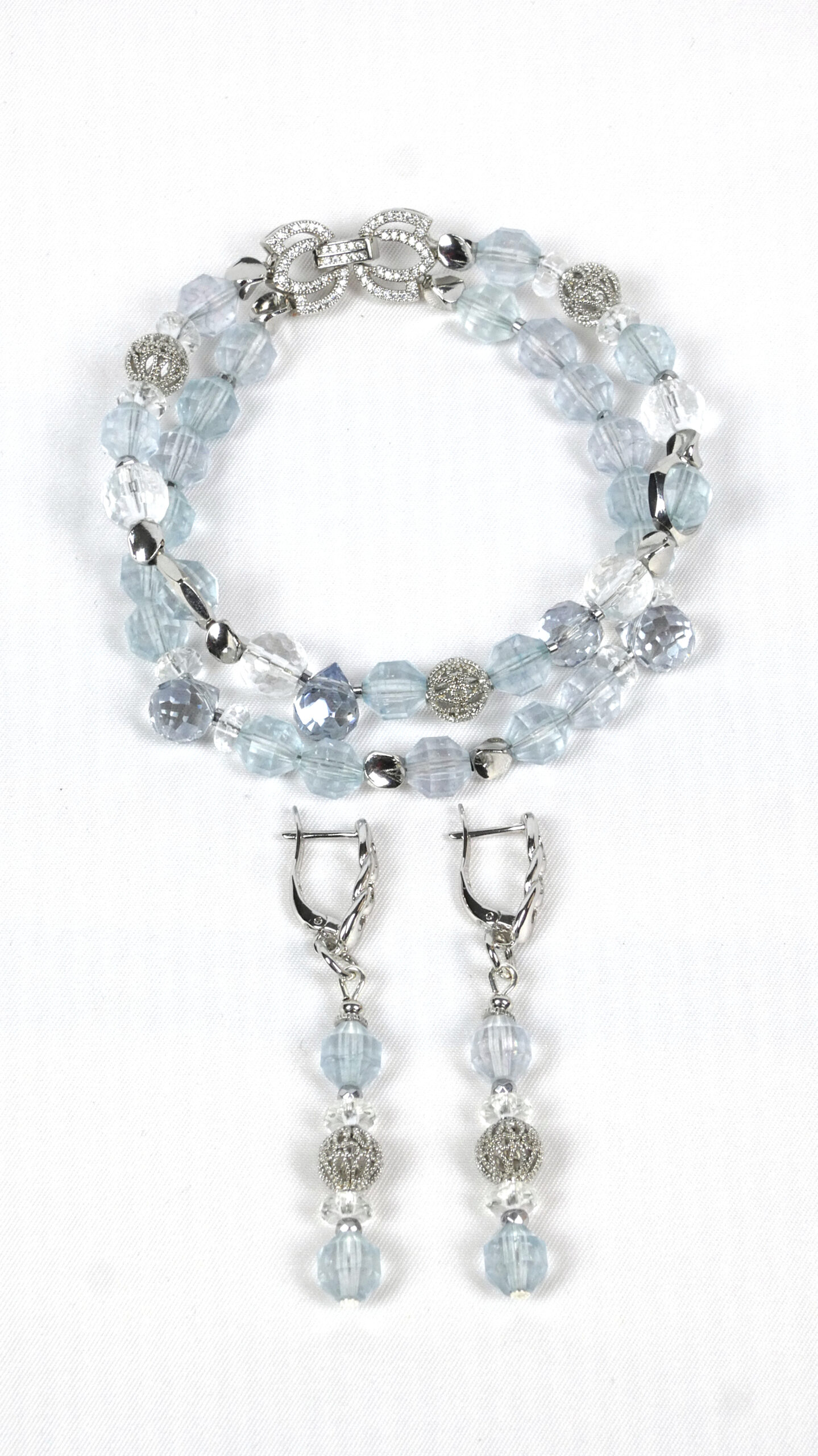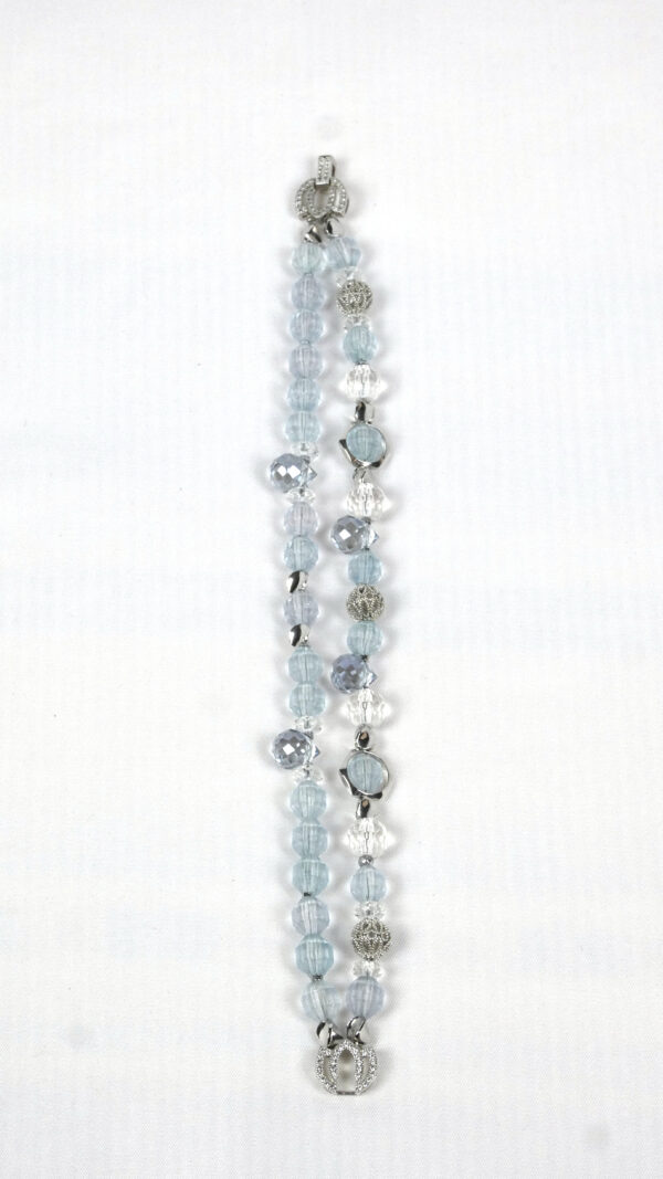 Prachtige armband, in twee rijen, met topaas Edelstenen en bergkristal, Gerodineerde RVS fournituren en een haaksluiting met schitterend zirkonia.