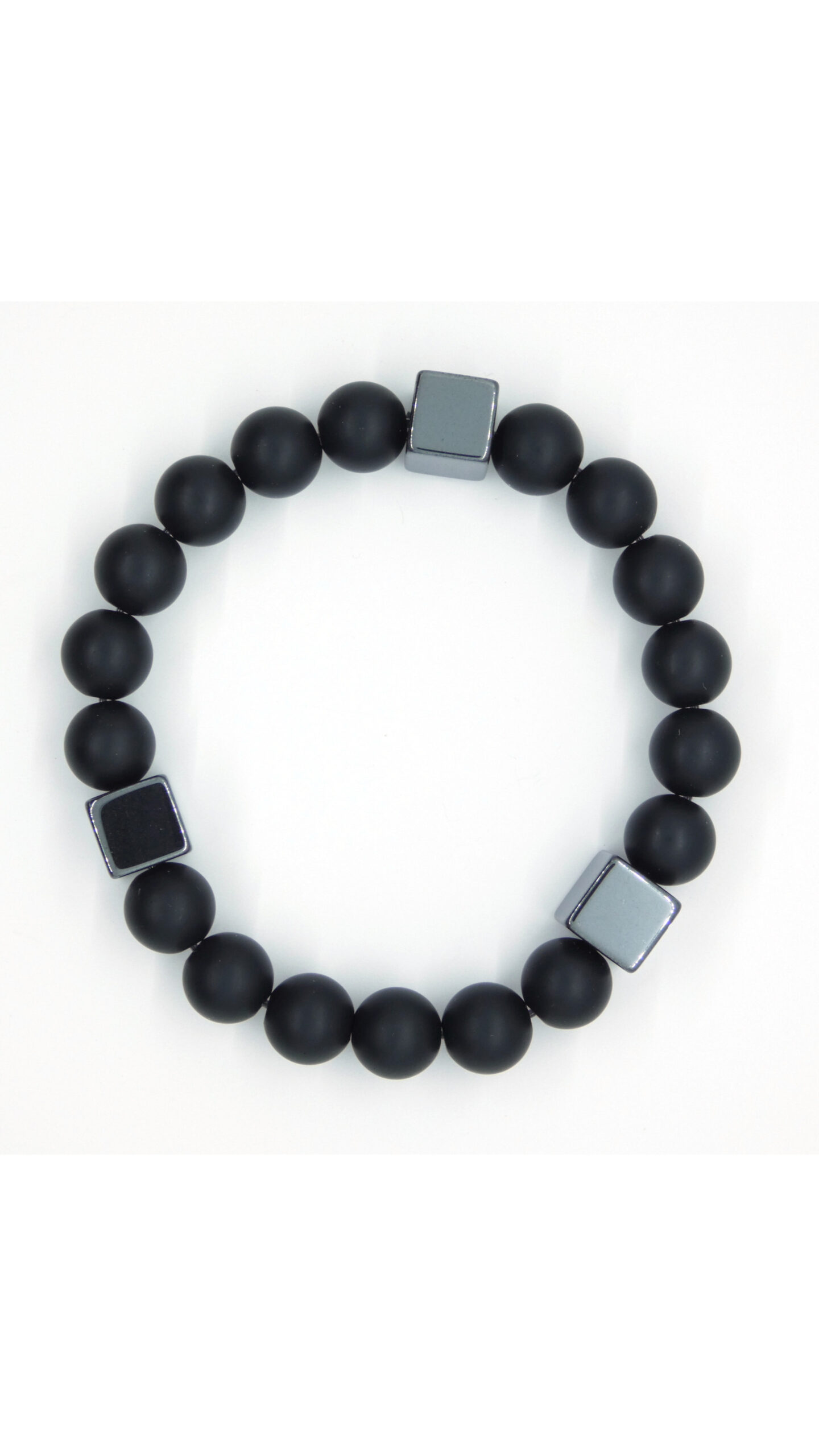 Deze, stoer uitziende, heren armband, is samengesteld met zwarte agaat en hematiet Edelstenen.